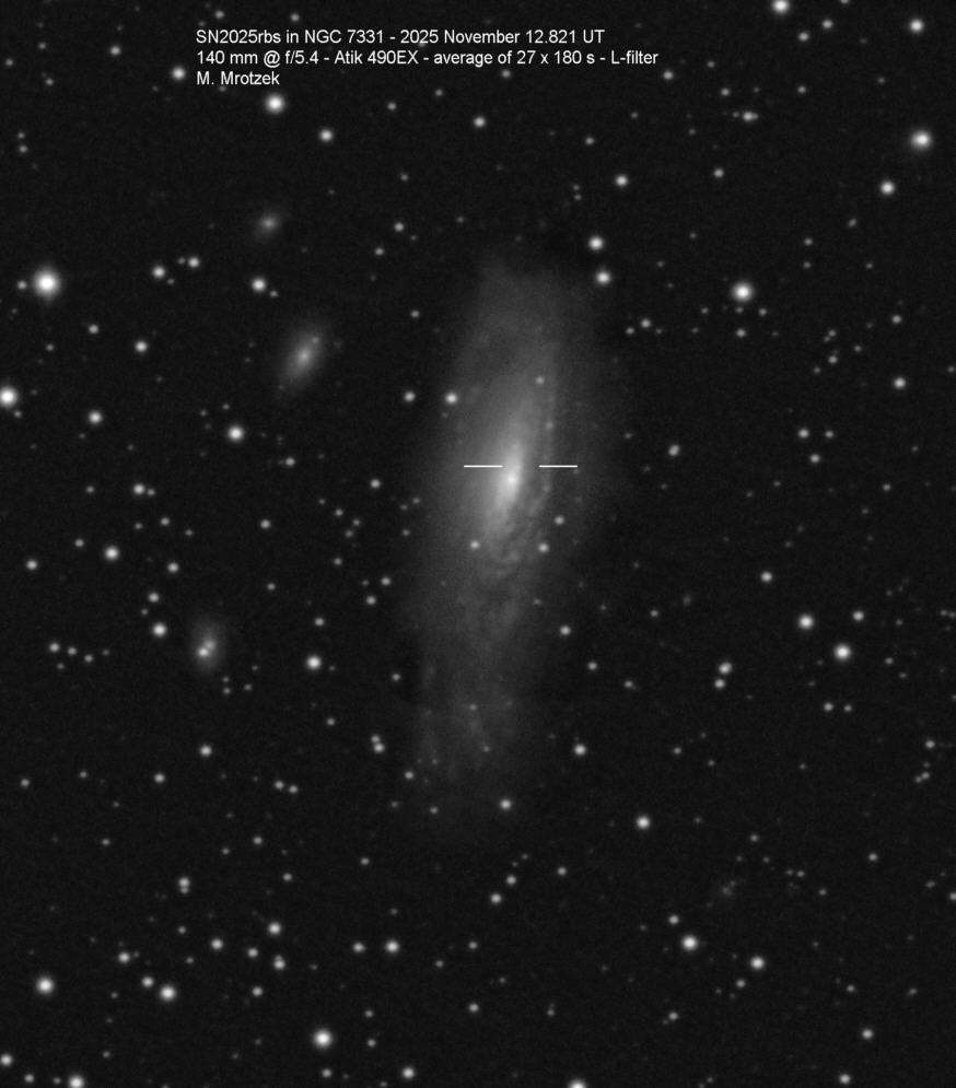 This page is devoted to information on Supernova 2025rbs in NGC 7331. Basic information on this SN, including the last reported brightness, on this Supernova can be found on the main page.