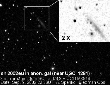 Found in MCG -1-7-35 at R.A. = 02h41m57s.44, Decl. = -06°47'46".4 Located 7".3 east and 14".2 south of the nucleus of MCG -1-7-35 (Discovery image) Mag 18.7*, Type II (References: IAUC 7829, TNS, |