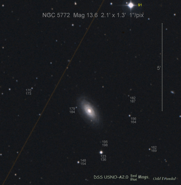 Found in NGC 2718 at R.A. = 08h58m52s.818, Decl. = +06°17'08".09 Located 0".0 east and 0".0 north of the center of NGC 2718 Mag 19.5:11/13, Type unknown (zhost=0.012819) |