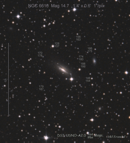 Found in NGC 594 at R.A. = 01h32m57s.80, Decl. = -16o32'07".3 Located 12".6 east and 1".6 north of the nucleus of NGC 594 (Discovery image) (Fred Ewalt image) (Ella Sanders image) Mag 16.7*, Type II (z=0.018) (CfA spectrum) (References: IAUC 7802, TNS, |