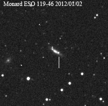 LSQ11gw ATEL 3828 discovered 2011/12/23.075 by La Silla-QUEST at R.A. = 05h19m37s.20, Decl. = +00°49'39".0 Mag 18.0:12/27, Type II (William Wiethoff image) (Joseph Brimacombe image)