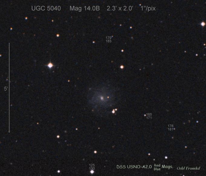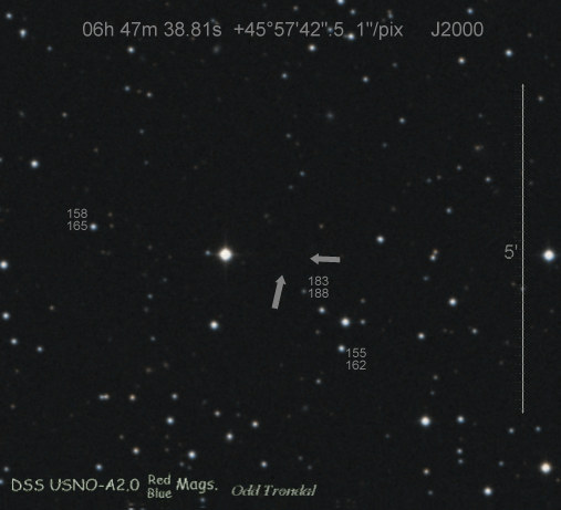 Found in UGC 3753 at R.A. = 07h13m55s.20, Decl. = +23°14'09".0 Located 10" west and 12" south of the center of UGC 3753 (Discovery image) (Stan Howerton image) Mag 20.0:3/5, Type LBV? |