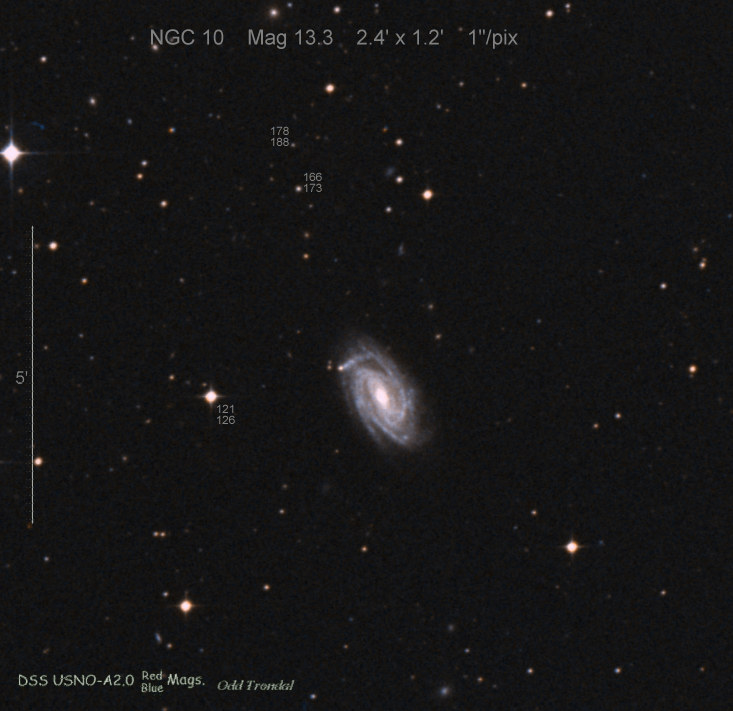 Found in UGC 889 at R.A. = 01h21m09s.90, Decl. = +17°51'45".0 Located 9" west and 23" south of the center of UGC 889 (Discovery image) (Stan Howerton image) Mag 21.0:10/21, Type unknown |
