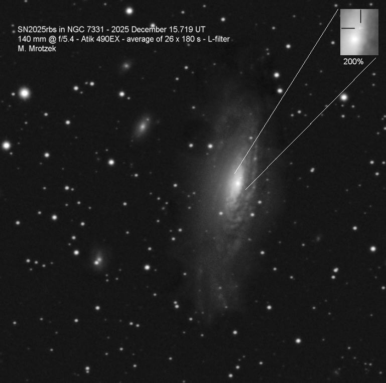 This page is devoted to information on Supernova 2025rbs in NGC 7331. Basic information on this SN, including the last reported brightness, on this Supernova can be found on the main page.