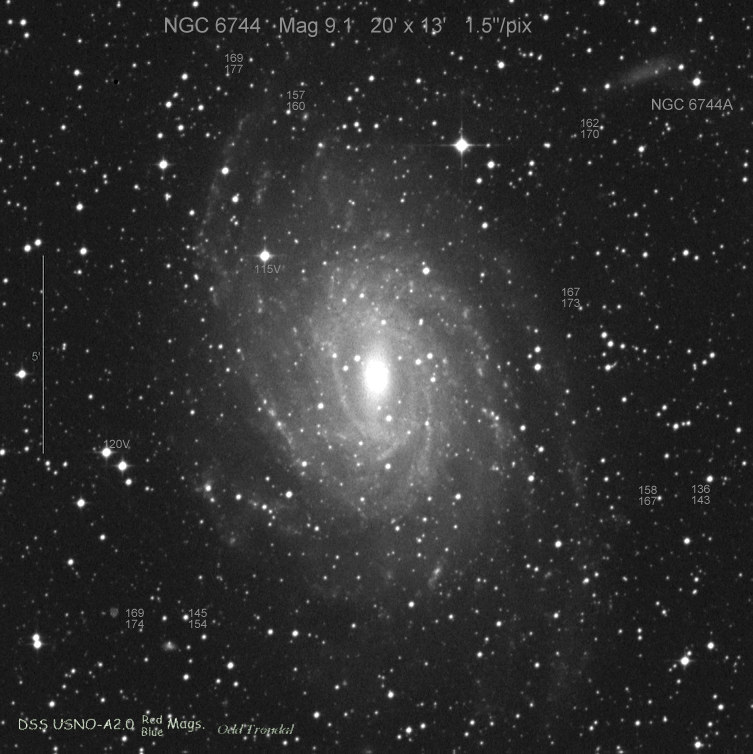 These images are done on the DSS image scale. Most Messier galaxies are done on a 2/3 scale, because the were large. The scale is as follows: